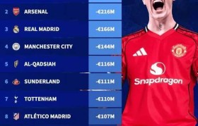 夏窗俱乐部净支出榜更新:英超狂撒币 曼联升至榜首